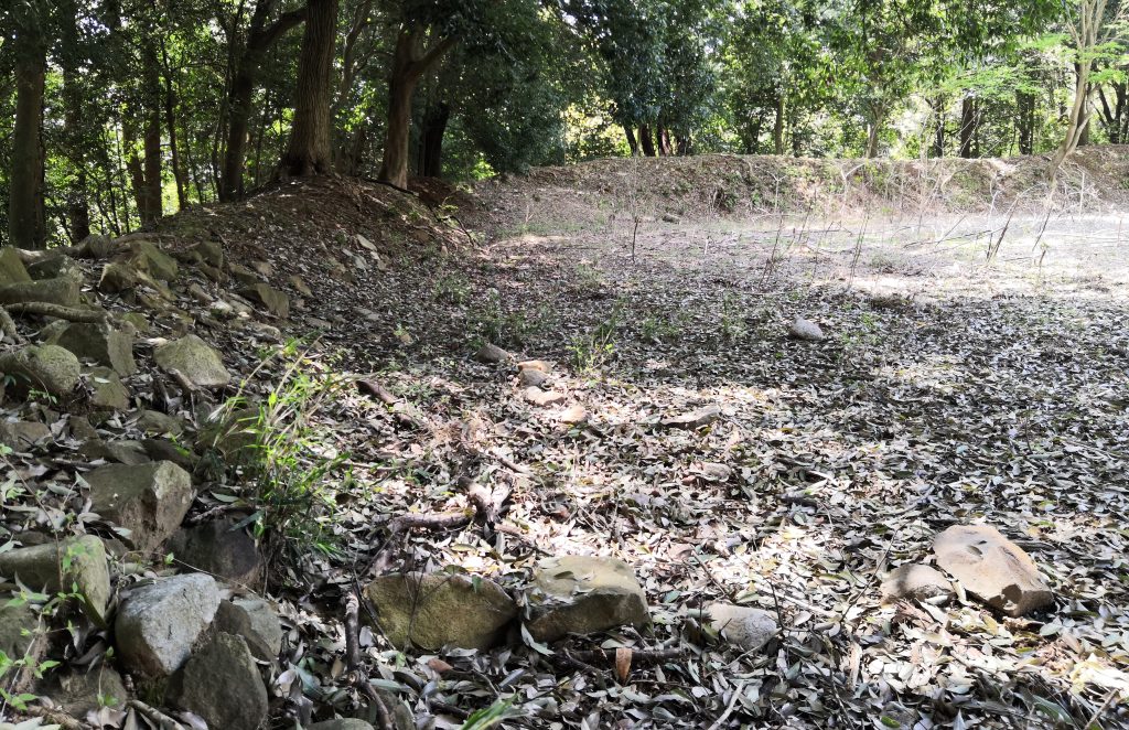 山麓部郭19-1(主郭) 土塁石積み(主郭東側下の帯郭から筆者撮影)
